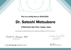 院長はICL認定医の資格を得ており、安心して手術を受けていただけます。